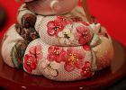 花咲くころを知らせる風、“花信風(かしんふう)”。春はじめに吹くこの風は花々が咲き始めることを教え、季節のはじまりを感じさせてくれます。そんな花信風をイメージしながら春を思い起こさせる花や動物を石川潤平作のまんまるな人形に手描きで色鮮やかに彩色しました。ちいさな、ちいさなお人形を覗き込むとそこには早春を思い起こさせる『梅』、そして鮮やかな萌葱色した“メジロ”を描いております。お節句を通じてお子様に見ていただきながら、小さな頃から自然の草花や動物達に興味をもっていただき、お子様の知識や教養を育んでいただけたらとの想いで製作いたしました。
