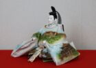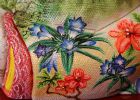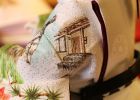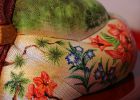 お人形には長野県を代表する県花でもある『りんどう』、松本市の市花である『れんげつつじ』をふんだんにあしらい、身近な自然を色鮮やかに描きました。また、長野県の県鳥である『らいちょう』の雌雄を金雲で描いてあります。松本市を代表する景勝地である“上高地”の『梓川と河童橋』の風光明媚な風景を描きました。