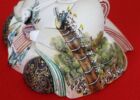 ふるさと信州雛「善光寺」「浅間山」「松本城」「諏訪湖」「高遠城址公園」竹垣諒彩色 頭 石川泰大作 京九番