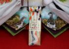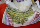 お人形には長野県を代表する県花でもある『りんどう』、松本市の市花である『れんげつつじ』、そして長野県の県鳥である『らいちょう』の雌雄を描き、身近な自然を色鮮やかに描きました。また『上高地』は松本市を代表する景勝地であり、梓川から見る雄大な『穂高連峰』が青空に映える姿を描きました。